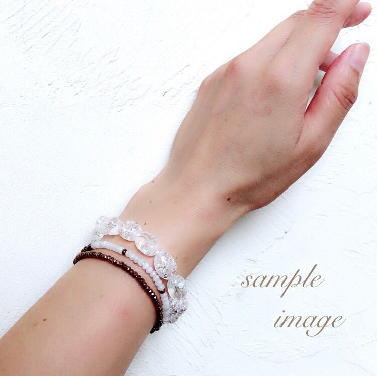 小粒のホワイトジェードのブレスレットにサンストーンを一石加えて可愛い雰囲気のブレスレットにしました。
