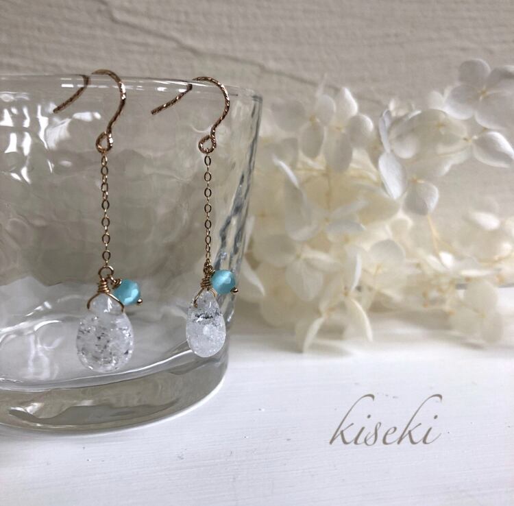 クラック水晶ア レンジピアス(イヤリング)14kgf 天然石